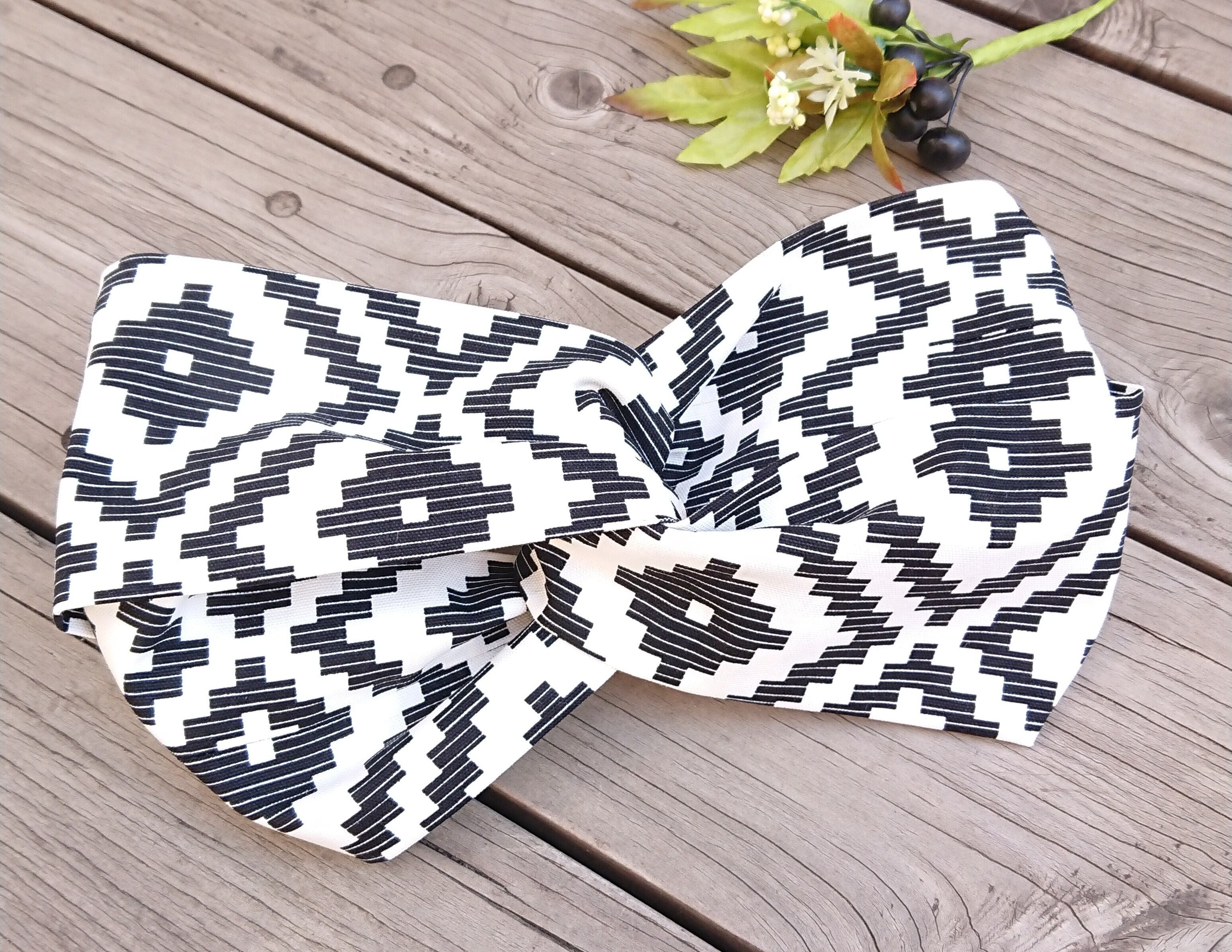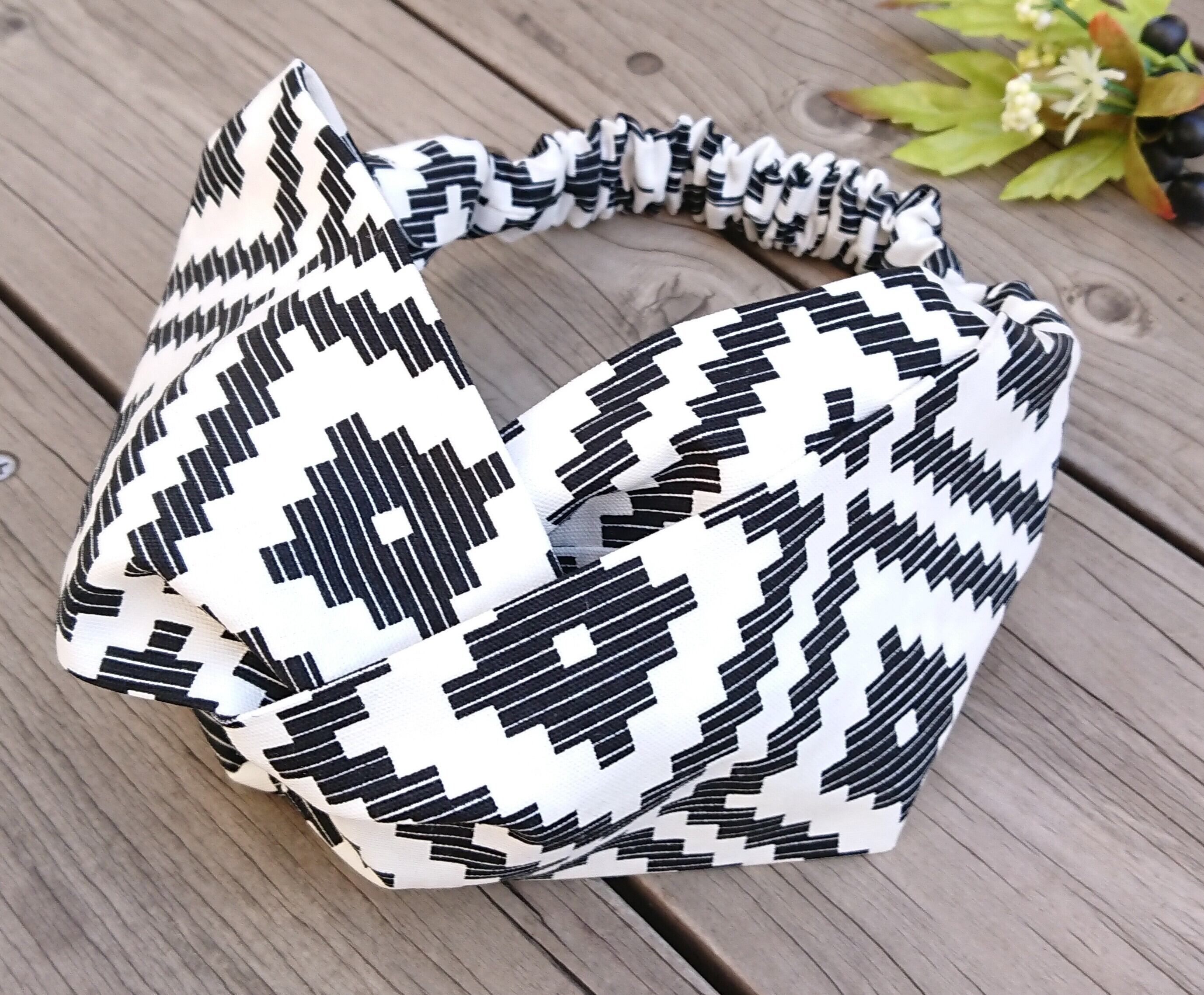 オルテガ柄が可愛い、ハンドメイドのボリューミーなクロスターバン、ヘアバンドです。