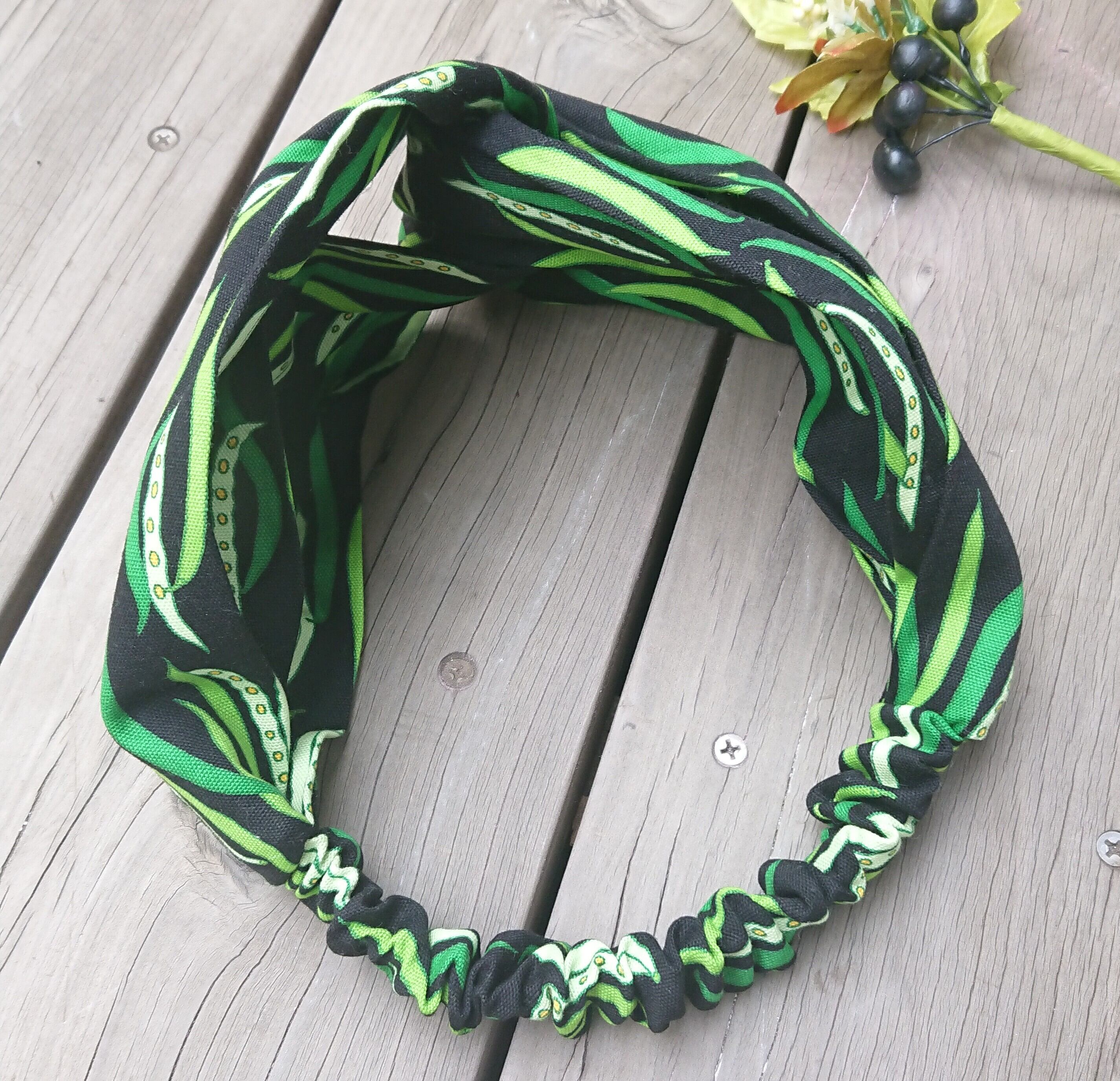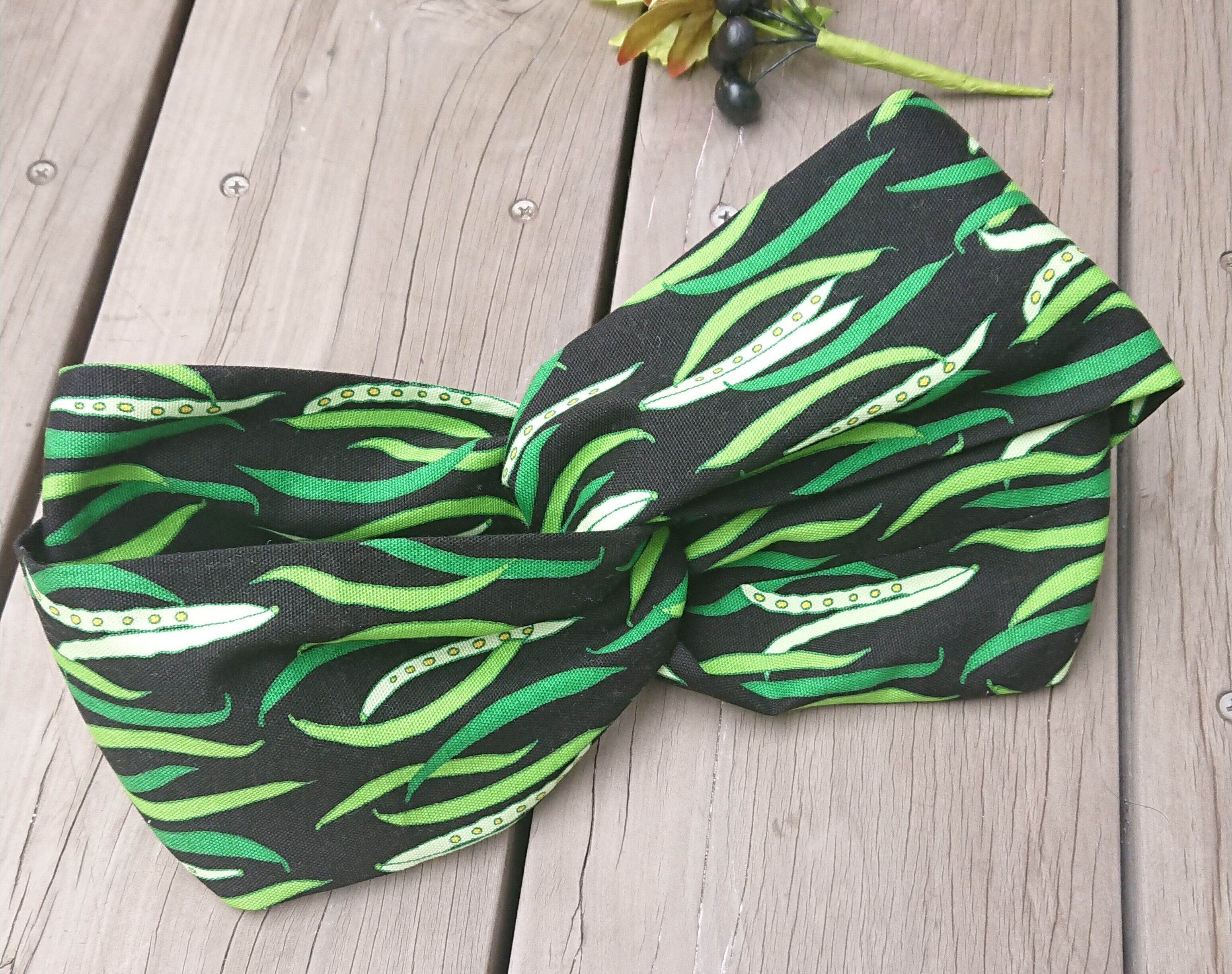 珍しいお豆柄が可愛い、ハンドメイドのボリューミーなクロスターバン、ヘアバンドです。