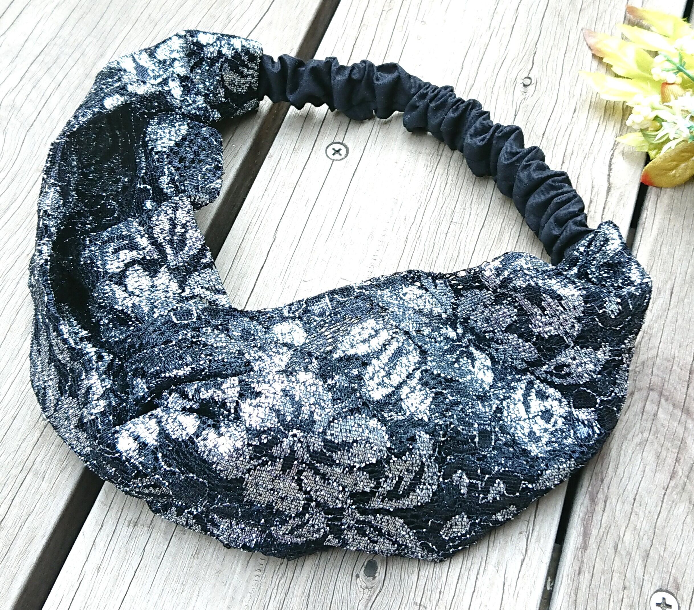キラキラ華やかなレースが可愛い、ハンドメイドのボリューミーなクロスターバン、ヘアバンドです。